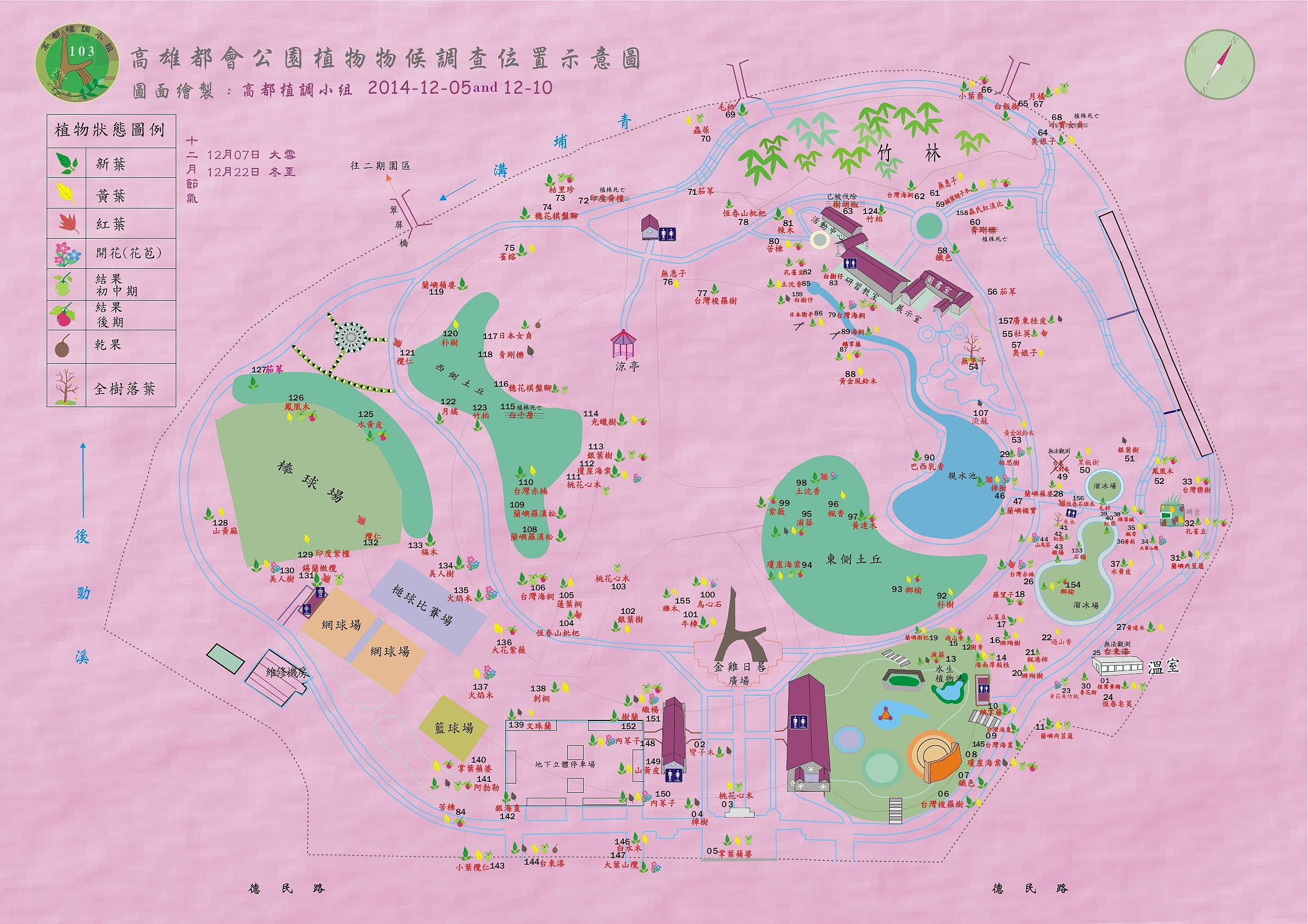 提供近期公園植物開花或結果等物候調查資料,提供有興趣的朋友們參考: