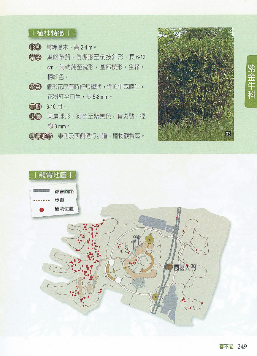 觀賞地點 東側及西側健行步道、植物觀賞區。